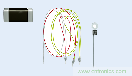 從左至右:安裝在印刷電路板上的SMT正溫度系數(shù) (PTC) 傳感器、與電機(jī)繞組進(jìn)行集成的正溫度系數(shù) (PTC) 傳感器、安裝在散熱片上帶接線端子的正溫度系數(shù) (PTC) 傳感器。