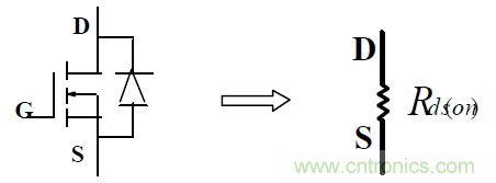 即內部二極管的等效電路,可用一電壓降等效,此二極管為MOSFET 的體二極管,多數情況下,因其特性很差,要避免使用。