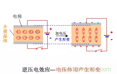 對(duì)具有壓電特性的介質(zhì)材料施加電壓,則產(chǎn)生機(jī)械應(yīng)力,發(fā)生形變。