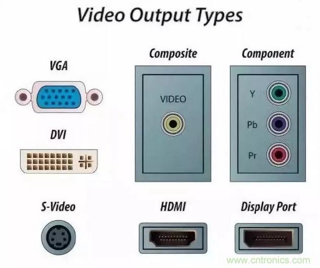 如上圖所示,電視機(jī)背面有幾個視頻連接器端子。今天我們來了解一下顯示連接器的種類及其特點(diǎn)。