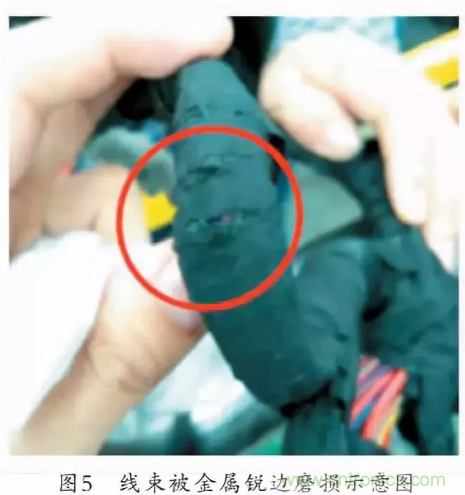 此類問題在前期設(shè)計時要考慮線束或接插件運動包絡(luò)區(qū)域是否與周圍零部件有干涉風(fēng)險,從而選擇合適的地方布置固定點,保證在滿足功能的情況下提高美觀性。如下圖5為線束在裝配過程中被金屬銳邊磨損失效的典型事例。表2為失效方式及控制方式匯總。