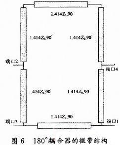 這是一個180°定向耦合器,也稱為rat-race網(wǎng)絡(luò),如圖5所示。物理上可以通過微帶實現(xiàn),如圖6所示。然而對于第1部分提出的710 MHz天線,由于波長太長,這樣的耦合器在移動設(shè)備上無法實現(xiàn)。為了實現(xiàn)去耦合,可以用貼片電感和電容做出成等效傳輸線,從而用電感和電容做成一個耦合網(wǎng)絡(luò),這就可以顯著降低耦合器占用的體積。如圖7所示,一個等效1/4波長傳輸線可以用兩個電容和一個電感來等效代替。電容和電感的計算公式為: