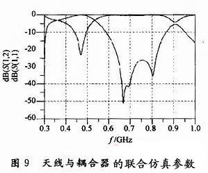 本文從s參數(shù)的角度分析了一個雙天線系統(tǒng)的去耦合方法,并通過一個天線設(shè)計實例,使用HFSS和ADS進(jìn)行去耦合前和去耦合后的仿真。結(jié)果顯示加入去耦合網(wǎng)絡(luò)和匹配網(wǎng)絡(luò)后兩個天線間的耦合可以降低至-35 dB以下,反射系數(shù)也可達(dá)到-15 dB以下,這滿足了工作于710 MHz的移動設(shè)備的要求。