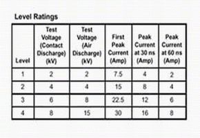 圖1:IEC61000-4-2規范指標一覽表。