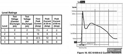 以系統級的方法來定義典型的ESD事件所采用的最常見的波形,是以其亞納秒上升時間和高電流電平(參見圖1)為顯著特征的IEC61000-4-2波形。這種波形的規范要求采用四級ESD量級。大部分設計工程師都要求把產品限定到最高級的8kV的接觸放電或15kV的空氣放電。當進行元器件級測試時,因為空氣放電測試在這樣的小型元器件上是不能重復的,接觸放電測試則是最適合的測試方式。