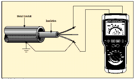 •相對于地和管線內所有其它導線,測試每一導線。將測量值的數據記錄放在一個安全的地方。