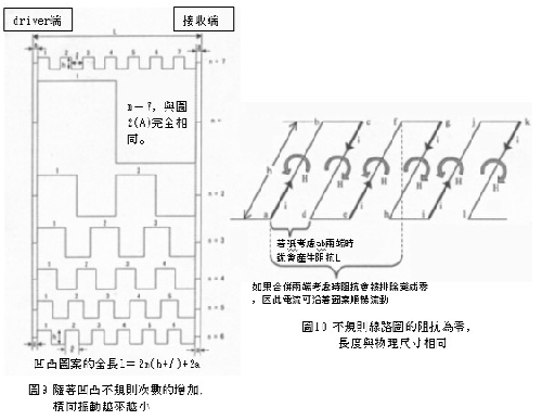 (1)。一般都認為「電氣長度」與「物理長度」,可是線路圖案彎曲次數亦即凹凸次數與長度的關系為何?
