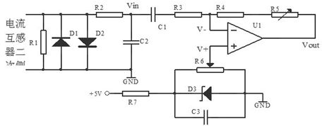 在檢測電流的大小時,根據(jù)測試電流的周期(工頻)按照每個周期40個點進(jìn)行采樣,采樣一個周期后,根據(jù)電流互感器的衰減倍數(shù)和提升電壓的數(shù)值,通過軟件算法計算出實際的電流有效值。電路應(yīng)滿足如下條件,當(dāng)交流電流的瞬時值達(dá)到正向峰值時,放大器輸出5V;當(dāng)交流電流的瞬時值達(dá)到負(fù)向峰值時放大器輸出0V。