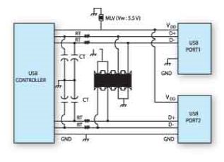 許多高速數據應用和終端產品采用混合式保護方式,在數據和時鐘線上采用基于間隙的器件,在電源連接部分采用多層壓敏電阻或基于硅的瞬態電壓抑制二極管。例如,USB接口的D+和D–線要求高速保護,這可以采用分立的芯片利用附加的多層壓敏電阻或瞬態電壓抑制器件用于VDD電源保護。PC、筆記本電腦、上網本等產品中常常需要多個USB接口連接。