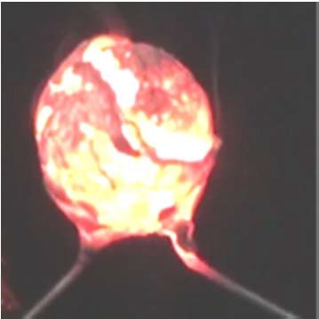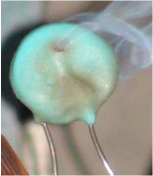 圖5:MOV14D471 在600V*5A 電流試驗后圖片 圖6:MOV14D471 在600V*10A 電流試驗后圖片