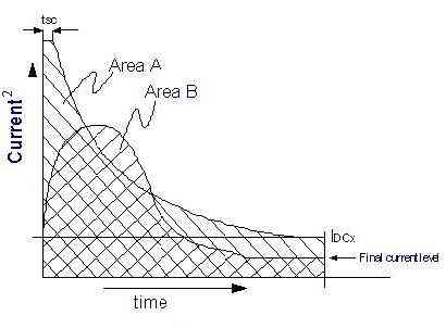 可能存在一種特殊的瞬間過流狀況:瞬間過流超出曲線與A區交接的界限,但是“曲線下面積”不足以產生錯誤開關條件。在下圖中(圖6),這個錯誤是很嚴重的,但是因為時長太短,不足以產生錯誤開關條件。