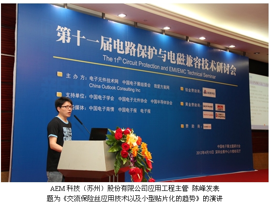 電路保護專業技術與解決方案供應商AEM科技股份有限公司于2012年4月10日出席了由CNT Networks、中國電子展組委會和China Outlook Consulting聯合舉辦的第十一屆電路保護與電磁兼容技術研討會。