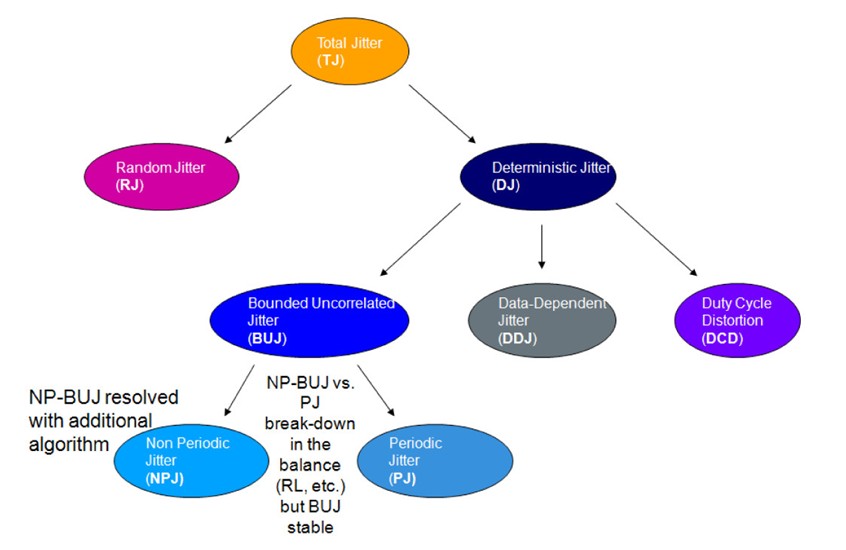 但到目前為止,使用抖動分離技術(shù)一直很難測量串?dāng)_引起的抖動或有界不相關(guān)抖動的影響。由于抖動算法沒有考慮BUJ,因此BUJ一直與RJ歸并在一起,與BER測試儀獲得的結(jié)果相比,得到的是悲觀的總抖動結(jié)果。