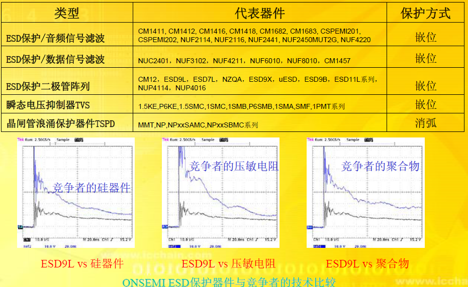 市場上有一系列對電子系統起保護作用的產品。下表簡單描述了各種產品的特征。