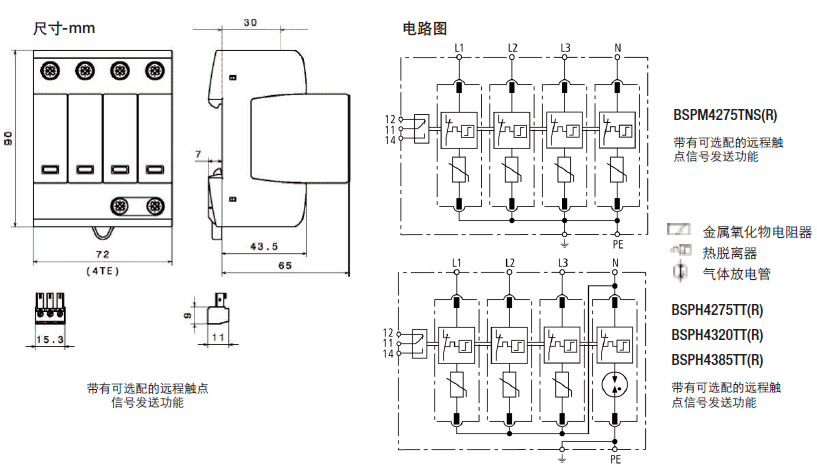 這種四極設備的特點是,用于TNS 230/400V系統("4-0"電路)中防止浪涌。