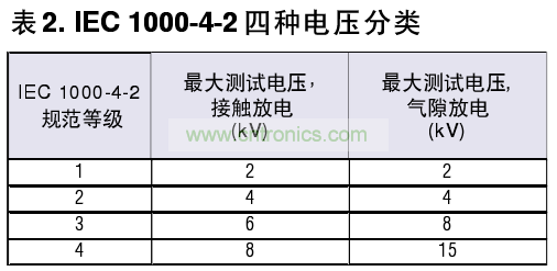 第二種方法是IEC 1000-4-2 >現(xiàn)已成為國(guó)際標(biāo)準(zhǔn)。相比Method 3015.7測(cè)試條件,它規(guī)定了更高的電容和更低的電阻}IE C 1000-4-2被廣泛地)II于測(cè)試終端設(shè)備的接口(表2)。值得一提的是> Maxim公司的模擬開(kāi)關(guān)和RS-232/RS-485接口IC完個(gè)符合這些ESD標(biāo)準(zhǔn),且無(wú)須外圍兒件。