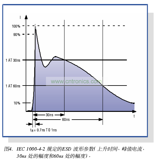 .采用模擬人體產(chǎn)生的靜電放電波形進(jìn)行測(cè)試。不同電路模型規(guī)定不同的幅值、上升/下降時(shí)間和功率。