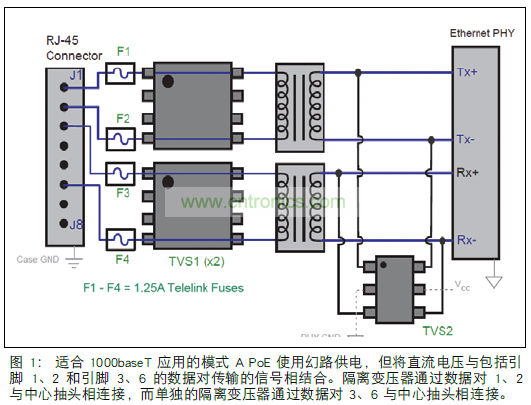 不采用縱向模式的方法可能只要求一個數(shù)據(jù)對安裝一根保險絲,適用于較低數(shù)據(jù)速率的以太網(wǎng),例如 10BaseT。 對于 100 和 1000BaseT 系統(tǒng),謹慎起見,將相同的保險絲組件置于數(shù)據(jù)對的兩個引腳中,以保護回路平衡。
