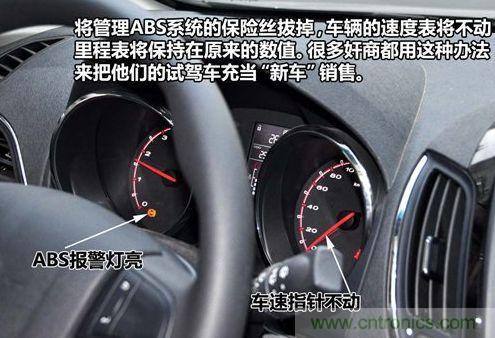 當(dāng)您新購(gòu)買車的時(shí)候發(fā)現(xiàn)車輛的里程表和車速表不工作時(shí)要注意了,因?yàn)楹芸赡苁羌樯贪涯囕v管理ABS泵的保險(xiǎn)絲給拆下來(lái)了,這樣車輛還能正常開(kāi)但里程數(shù)不增加,而這也是很多奸商翻新試駕車后當(dāng)新車賣的常用手段。