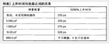 通常,USB 2.0 支持 480Mbps (bits per second) 的數(shù)據(jù)傳輸;DVI 和 HDMI 協(xié)議更是分別支持高達(dá) 8Gbps 和 5Gbps 的數(shù)據(jù)傳輸帶寬。在 USB 2.0、DVI 和 HDMI 的高速數(shù)據(jù)率下,傳統(tǒng)保護(hù)裝置的寄生電容可能破壞信號(hào)的完整性或令其失真。失真表現(xiàn)為由較慢的上升和下降時(shí)間所致的高態(tài)/低態(tài)瞬變的前沿和后沿被修圓。上升和下降時(shí)間較慢會(huì)給系統(tǒng)帶來(lái)一些問(wèn)題,其中最重要的是時(shí)序問(wèn)題。電路在特定的時(shí)間需要穩(wěn)定的“高”態(tài)和“低”態(tài)。隨著各狀態(tài)之間過(guò)渡時(shí)間的增加,電路有可能檢測(cè)到不完整的過(guò)渡期,從而將數(shù)據(jù)誤差引入系統(tǒng)。附表1是不同寄生電容 ESD 抑制器件對(duì)數(shù)據(jù)上升沿時(shí)間 (10%至90%高電平) 所造成的影響比較。