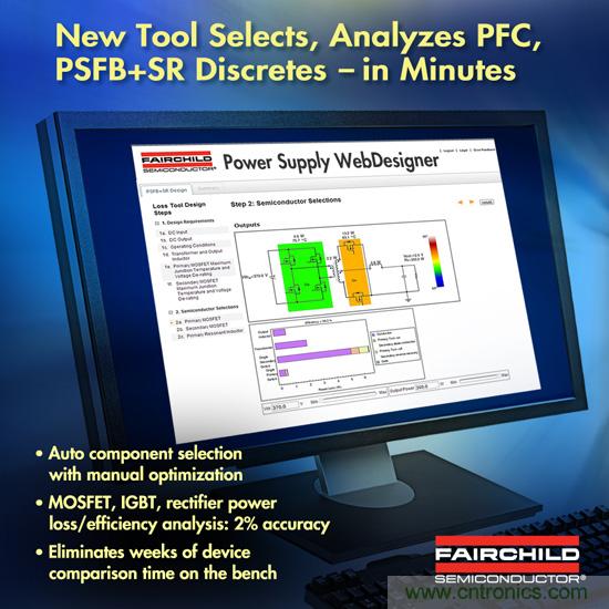 飛兆半導(dǎo)體公司最近將Power Supply WebDesigner (PSW) - 一款在線設(shè)計和模擬工具,可在一分鐘內(nèi)提供完整的設(shè)計–進(jìn)一步強(qiáng)化,引入傳動系分立式(MOSFET/IGBT/整流器)器件功率損耗和效率分析工具。