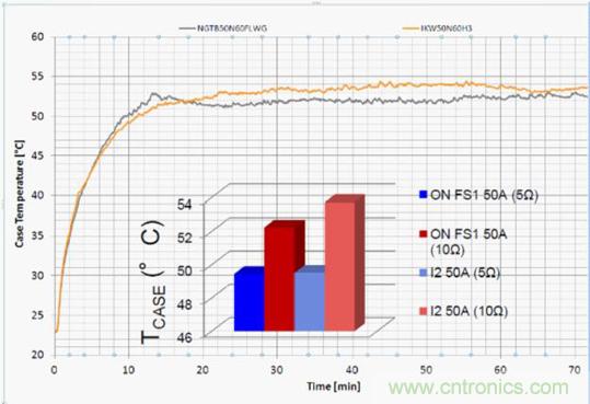 安森美半導體的客戶已成功使用其場截止型第一代IGBTNGTB50N60FLWG開發(fā)出了各種應用,如功率10 千伏安、功率因數0.9的不間斷電源,以及采用半橋諧振拓撲結構的1450瓦廚用電爐。客戶認為,安森美半導體場截止型第一代IGBT的性能達到了市場上最好的性能;其IGBT在電磁爐上的溫升低于其它2款IGBT。