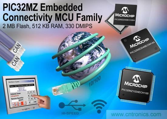 全球領先的整合單片機、混合信號、模擬器件和閃存專利解決方案的供應商——Microchip Technology Inc.(美國微芯科技公司)宣布推出兩款最新創新產品。擁有24款器件的全新PIC32MZ嵌入式連接(EC)系列32位MCU提供了330 DMIPS和3.28 CoreMarks™/MHz的卓越性能,以及有雙存儲區的現場升級閃存(高達2 MB)、512 KB的大容量RAM,以及支持當今要求嚴苛的應用所需的連接外設。同時,Microchip還推出了業界最全面的32位單片機固件開發框架——MPLAB® Harmony。該框架是第一款把許可、轉售及支持Microchip和第三方中間件、驅動程序、函數庫和實時操作系統集成于一體的產品,簡化了包括全新PIC32MZ系列在內的所有32位MCU的開發過程,縮短了集成和上市所需的時間。
