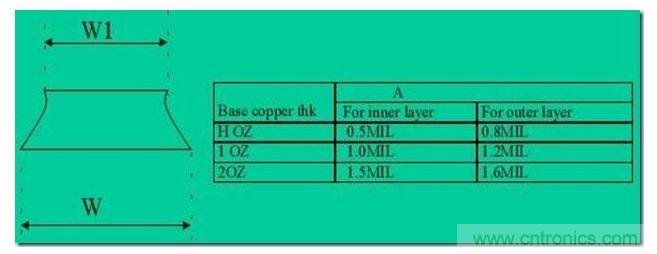 走線上下寬度不一致的原因是:PCB板制造過程中是從上到下而腐蝕,因此腐蝕出來的線呈梯形。