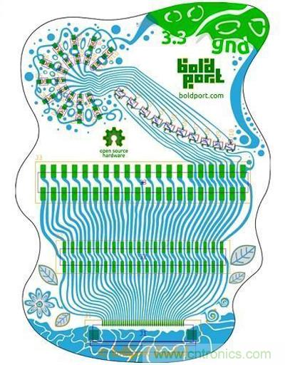以下是許多有如藝術(shù)品的電路板設(shè)計,對于這些創(chuàng)作者,筆者忍不住要贊賞他們的努力成果;當(dāng)你在做電路板繞線設(shè)計時,你可以維持傳統(tǒng)做法使用枯燥簡潔的線條,但加入一些變化與美學(xué)的繞線形式在功能上并不會打折扣;看看這些作品,難道你不覺得它們看起來是如此生機(jī)勃勃,比純粹講究實(shí)用主義的四方形綠色塑料板更有“人性”?
