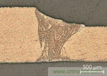為了防腐蝕,大多數的熱成型材料都有鋁硅涂層。而在激光焊接過程中,鋁硅涂層將在焊縫中形成FeAl合金金相(如圖1所示),從而導致激光焊縫無法通過抗拉強度測試。因而,在激光焊接前必須去除鋁硅涂層。