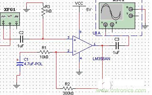 我們先用LM324電壓跟隨器做一個簡略的草圖,圖片如下所示: