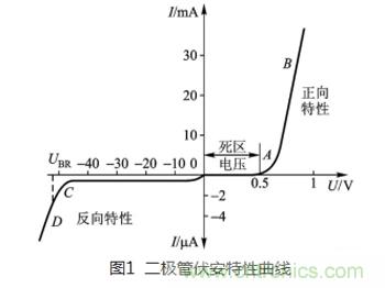 提到二極管,大家最熟悉的就是二極管的單向導電性,反映伏安曲線上如圖1所示。當正向偏壓U=0.5V(硅管)時,二極管開始導通,電流越大電壓越大,具有很低阻抗;當加反向偏壓時二極管不導通,在一定范圍內有很小的漏電流,具有很大阻抗。其這個單向導電性,也起到了開關的作用,所以在整流和開關方面都有廣泛的應用。