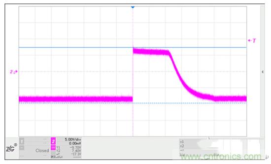 以SP00S12模塊為例,它可以滿足 IEC/EN61000-4-5 ±4KV 浪涌等級要求,可用于各種信號傳輸系統,抑制雷擊、浪涌、過壓等有害信號,對設備信號端口進行保護,非常適合于CAN、 RS-485 等通信領域的浪涌防護。以共模浪涌測試為例,在SP00S12輸入端加載4KV、 1.2/50μs 浪涌電壓(圖4),在輸出端測試壓降已被降低至17.1V(圖5)。
