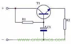 圖22中,C1可選擇幾十微法到幾百微法;R1可選擇幾百歐到幾千歐,具體取值可根據T1的β值確定,β值高,R可取值稍大,只要保證T1的集電極-發射極電壓(UCE)大于1.5V即可。T1選擇時要注意耗散功率PCM必須大于UCEI,如果工作時發熱較大則需要增加散熱片。