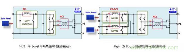 3)對于一些復雜系統,特別是像日本市場的產品,為適合其國情,往往在PV逆變器的前端會采用多個MPPT的直流升壓,而后端卻只有單Boost進行MPPT控制。
