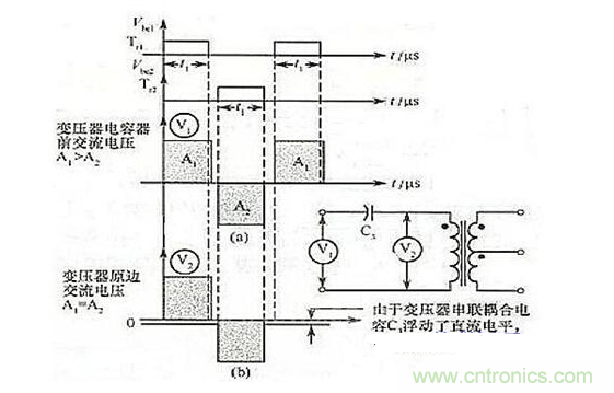 如果要這種不平衡的波形驅(qū)動(dòng)變壓器,將會(huì)發(fā)生偏磁現(xiàn)象,致使鐵心飽和并產(chǎn)生過(guò)大的晶體管集電極電流,從而降低了變換器的效率,使晶體管失控,甚至燒毀。