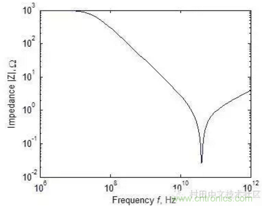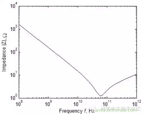 一個典型的1pF電容阻抗絕對值與頻率的關系