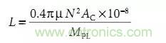 式中:N = 圈數, Ac = 截面積, 分母 Mpl = 磁路長度。