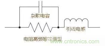 電感線圈在低頻、諧振及工作頻率高于諧振頻率時會呈現不同的特性,特別是當工作頻率超過諧振頻率是電感不再是電感而變成的電容。圖中的電容是線圈的匝間電容。