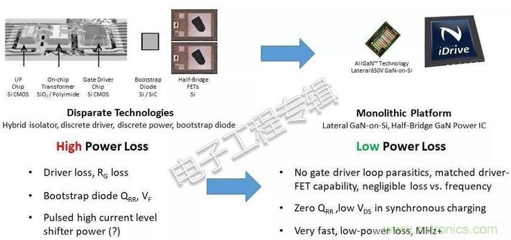 圖4:分離驅動器和分離FET與GaN功率芯片性能比較