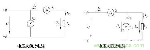 2)電壓表后接電路:適用待測電阻很?。ㄟh小于電壓表內阻)的情況。原理同電流表的內阻要求越小越好。