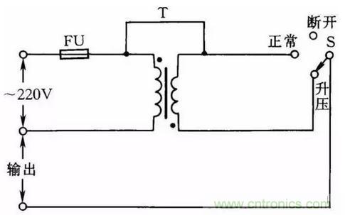 圖34:擴大單相自耦調壓器調節電壓范圍線路