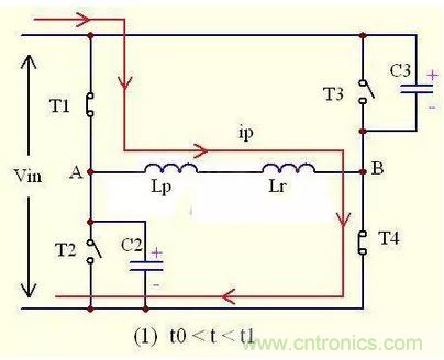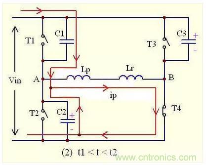 T1,T2稱為超前臂開關管,T3,T4稱為滯后臂開關管