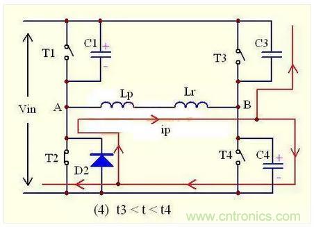 工作模態四:正半周期滯后臂諧振過程