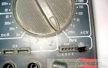 找到基極和知道是什么類型的管子后,就可以來判斷發射極和集電極了。如果使用指針式萬用表到了這個步可能就要用到兩只手了,甚至有朋友會用到嘴舌,可以說是蠻麻煩的。而利用數字表的hFE檔(hFE;測量三極管直流放大倍數)去測就方便多了,當然你也可以省去上面的步驟直接用hFE去測出三極管的管腳極性,我自己則認為還是加上上面的步驟方便準確一些。
