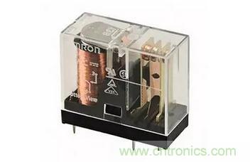 圖2:Omron Electronic的印刷電路板安裝式G2R-1-DC24通用繼電器在24V時(shí)的額定切換電流為10A。(圖片來源:Omron Electronics)