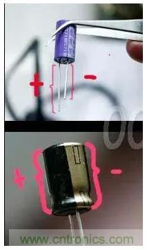 對(duì)于直插的有極性的電容來說,好分辨,長(zhǎng)腿為正,短腿為負(fù)。電解電容有黑色標(biāo)志的為負(fù),也對(duì)應(yīng)著短腿。