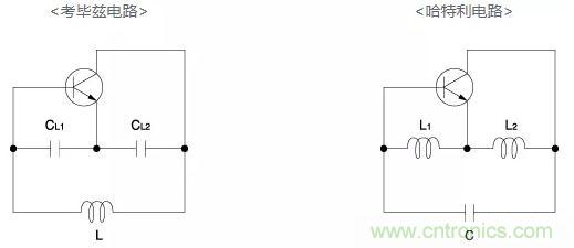 CERALOCK®、石英晶體、LC電路屬于上述第一類電路。考畢茲和哈特利電路是典型的LC正反饋電路和調諧反鍵振蕩電路,如下所示: