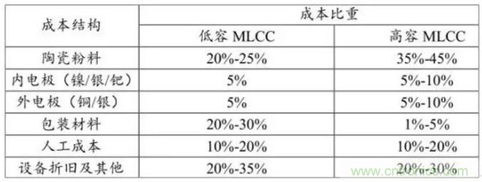 目前,MLCC的主要原料是鈦酸鋇、氧化鈦、鈦酸鎂、鈦酸鎂等,形成COG、Y5V、X7R、NPO等種類,依電氣特性應用各不相同決定MLCC的特性,來決定不同的燒結溫度與燒結氣體。此外,從MLCC成本結構角度,瓷粉在整個MLCC中成本占比較大,尤其是高容MLCC的生產,高容MLCC對于瓷粉的純度、粒徑、粒度和形貌有嚴格要求。