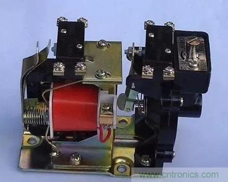 其中通電延時型時間繼電器動作過程是:線圈不通電時,線圈的銜鐵釋放壓住動作杠桿,延時和瞬時觸點不動作;當線圈得電吸合后,銜鐵被吸合,銜鐵上的壓板首先將瞬時觸點按下,觸點動作發出瞬時信號。這是因為銜鐵吸合動作杠桿不受壓力,在助力彈簧作用下慢慢動作(也就是延時),動作到達最大位置杠桿上的壓板按動延時觸點,觸點動作發出延時信號,直至線圈無電釋放,動作結束。其實物圖片如下圖: